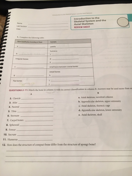 Solved Introduction to the Skeletal System and the Axial