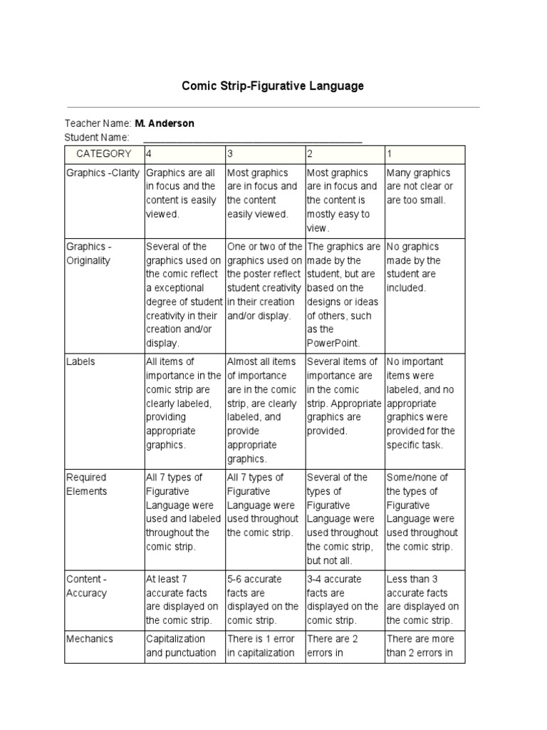 iRubric Figurative Language Comic Strip rubric XAC392 RCampus