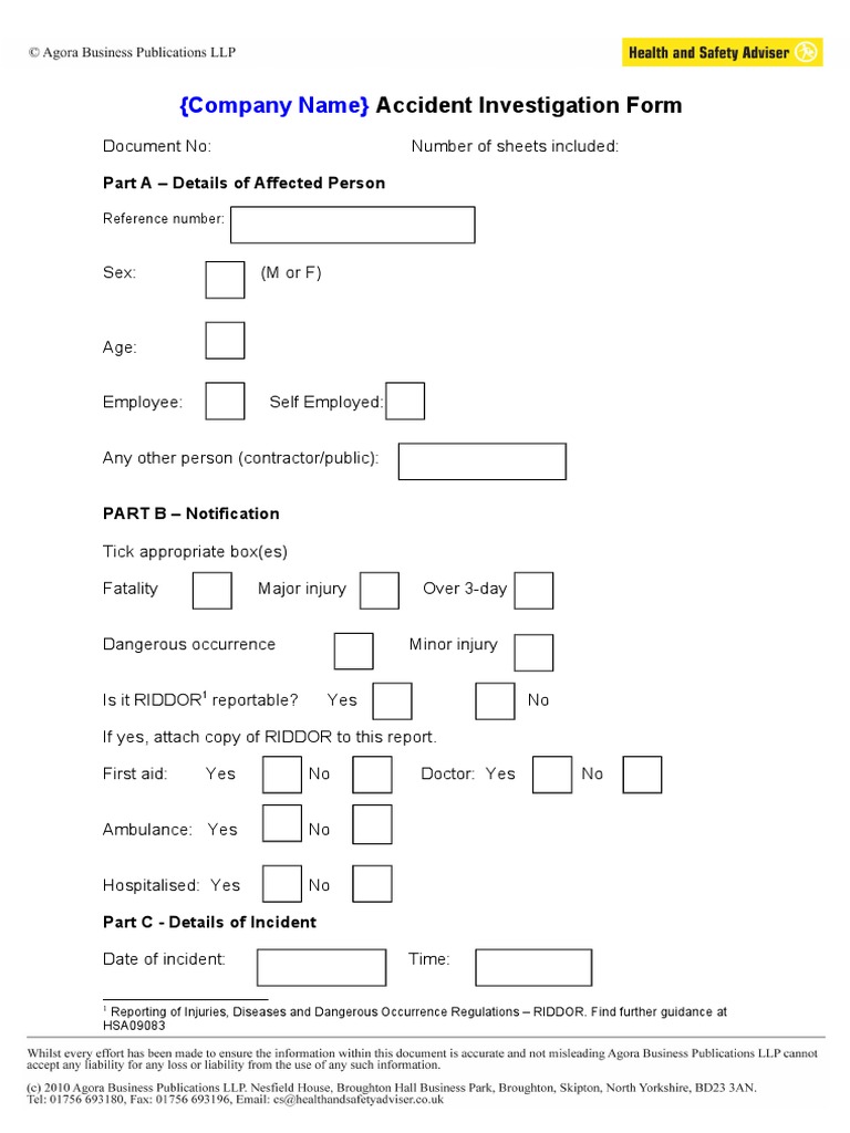 Accident Investigation Form Template Business