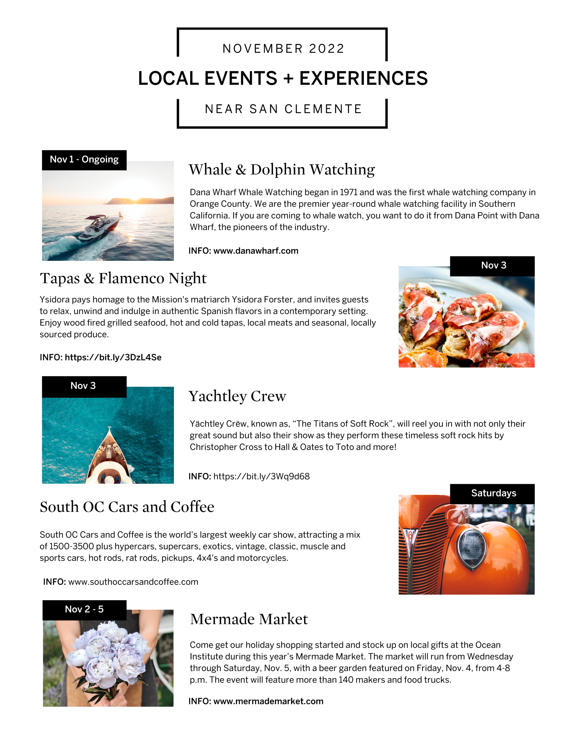 October 2022 Calendar San Clemente Events