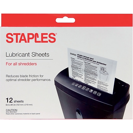 Staples? Shredder Lubricant Sheets 12/pk Shredder Sheets Free Shipping