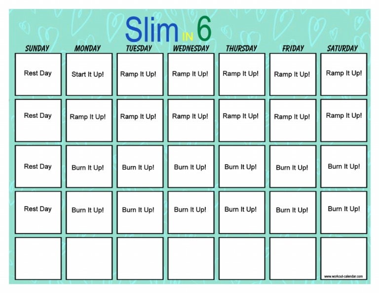 Slim In 6 Workout Calendar My Calendar Template Collection