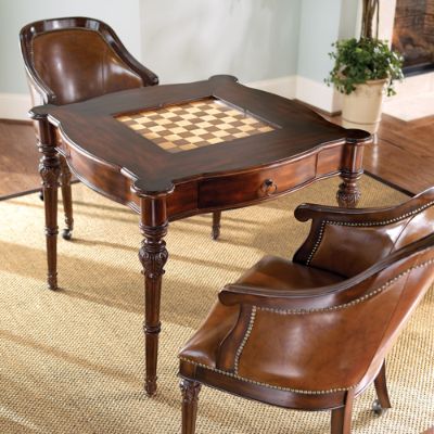 Freeman Game Table and Two Leather Chairs Frontgate