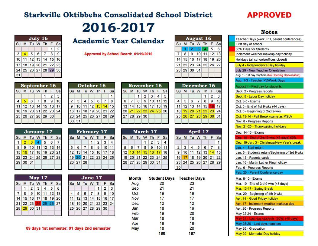 Academic Calendar Updated for 20182019 Starkville Oktibbeha School