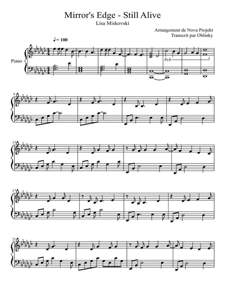 Mirrors Edge Still Alive (Piano sheet music) Entertainment (General)