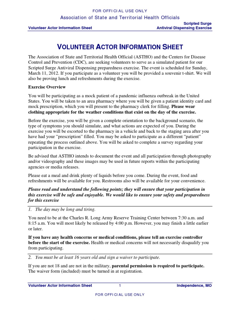 Scripted Surge Volunteer Actor Info Waiver Form 20120302 Antiviral