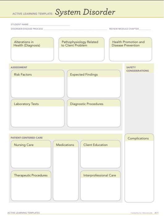 Solved ACTIVE LEARNING TEMPLATE System Disorder STUDENT NAME