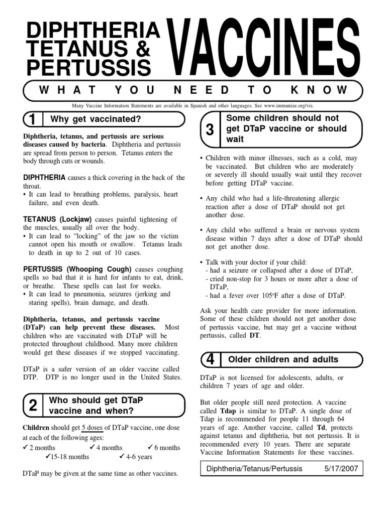 DTaP (Diptheria, Tetanus, Pertussis) Vaccine Information Statement