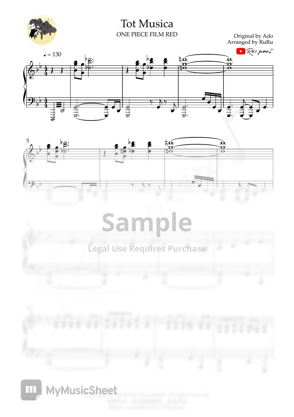 ONE PIECE FILM RED Tot Musica Sheets by Ru's Piano