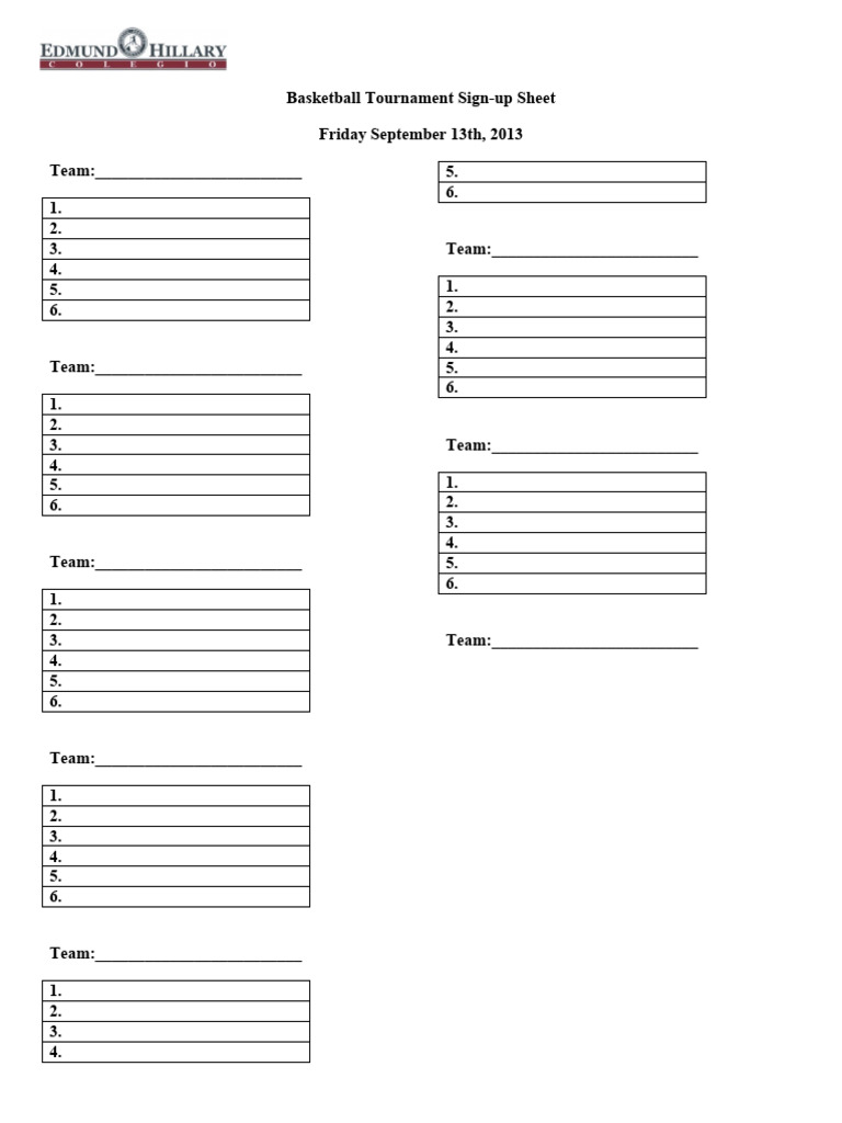 Basketball Tournament Signup sheet PDF