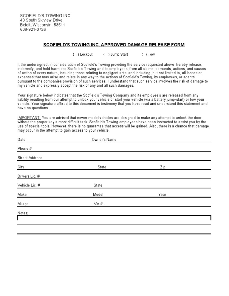 And i unconditionally release, waive and discharge my right, whether by contract or under operation of However, many tow companies include the first few miles in their base fee. Web recover and tow my vehicle. I also agree and understand that circumstances outside _____ control, with regard to the accident involving my vehicle, may make recovery and removal of my.