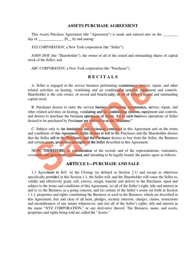 Assets Purchase Agreement Balance Sheet Trademark
