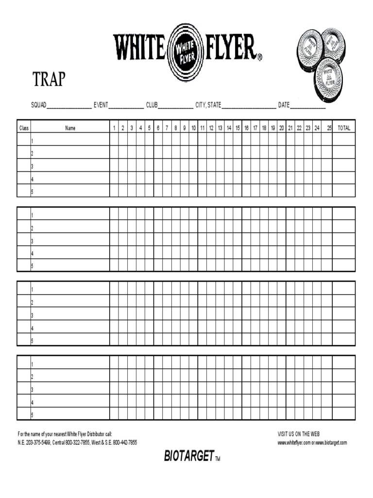 Trap Score Sheet - Web trap shooting score sheet event: Class/ ydg squad leader initials 1st trap _____ 1 1 2 2 3 3 4 4 5 5 squad leader initials 2nd. Web find your discipline and download a printable pdf of the scorecard for trap, skeet, or sporting clays shooting.