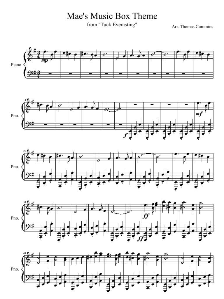 Tuck Everlasting Music Box Theme 2, Sheet Music for Piano Kallet