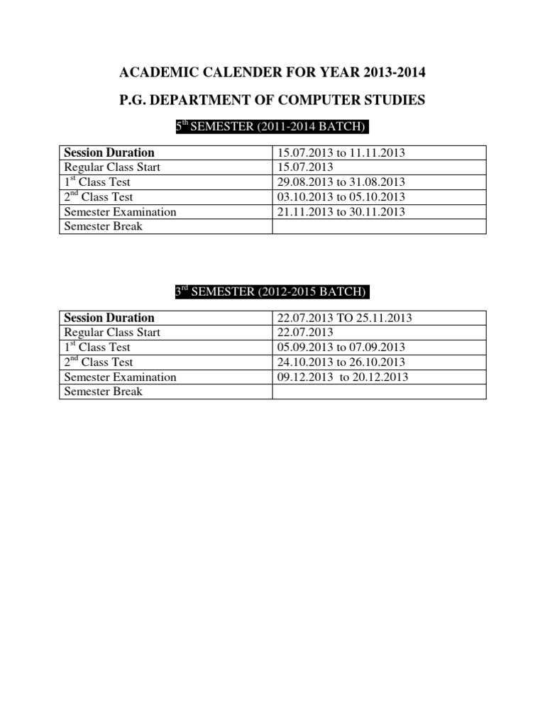Academic Calender For Year 2013 PDF