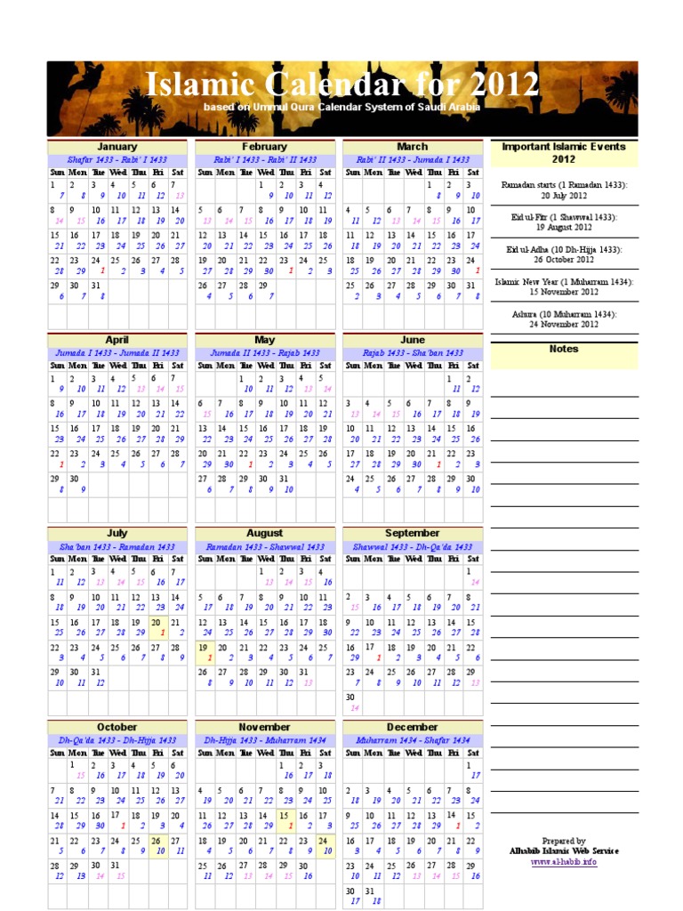 January February March Important Islamic Events 2012 Based On Ummul