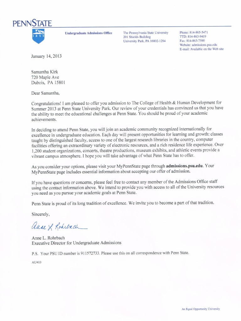 Main Penn State Acceptance Letter PDF