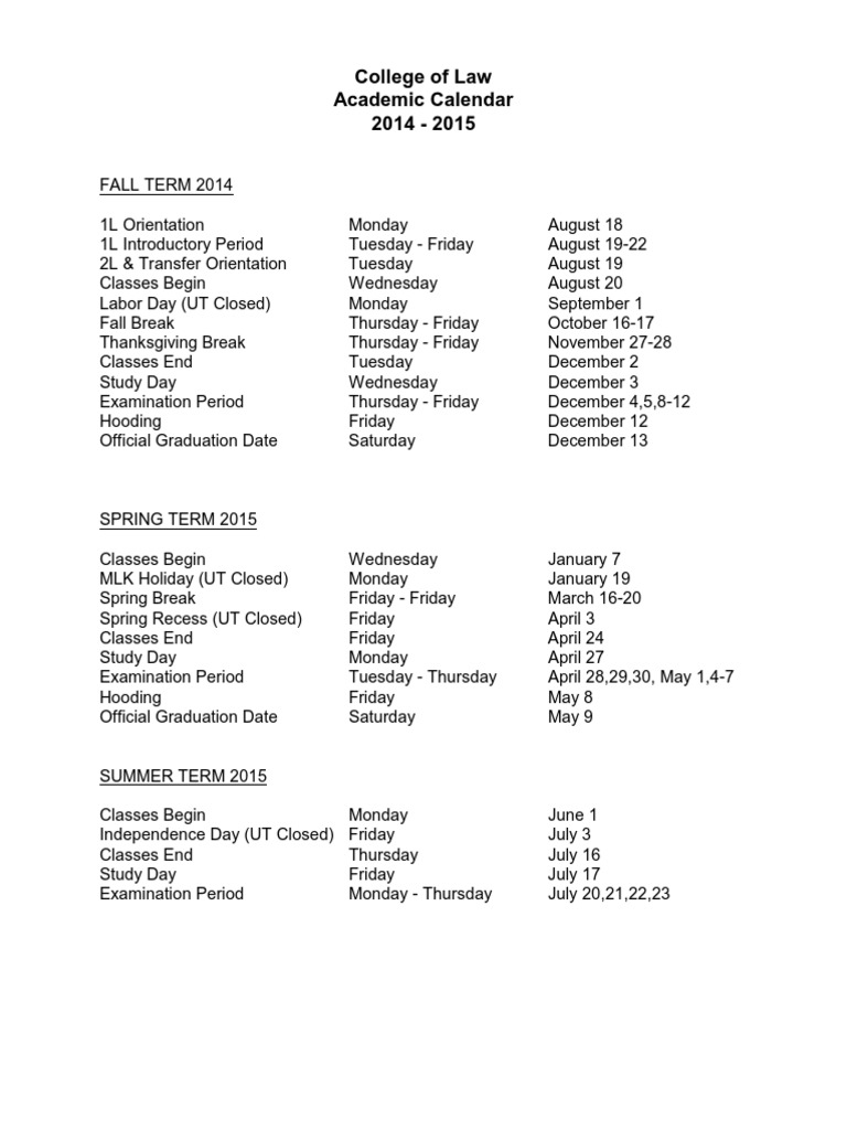 Ut Law Academic Calendar Customize and Print