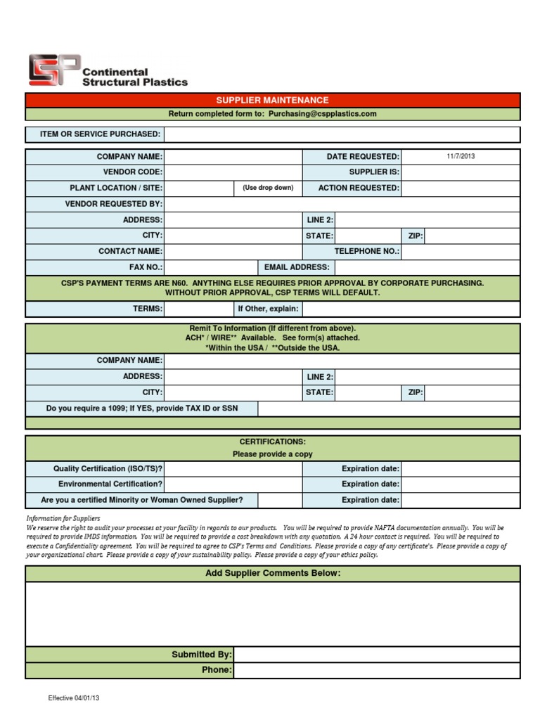 • find vendor code • confirm w9 is on file so vendor can be paid • determine if vendor is set up to receive ach payments • verify correct vendor payment address. Web use this form to request vendor maintenance for vendors that can be issued a contract or purchase order. Web when it is determined that a new vendor.
