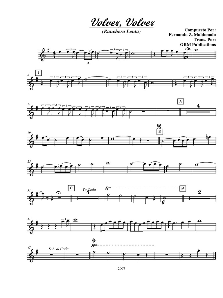 Volver Volver Trumpet Sheet Music - 1 part • 1 page • 02:27 • jun 29, 2023 • 7 views.