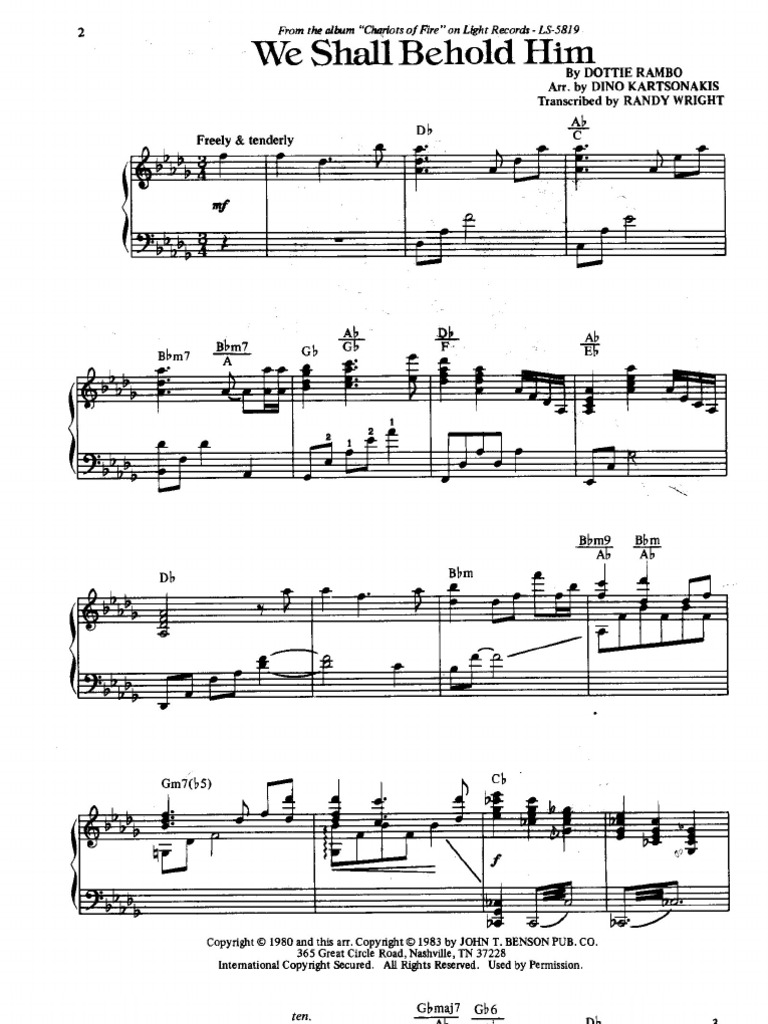 Web download and print in pdf or midi free sheet music for we shall behold him by dottie rambo arranged by rixwilliamtil1 for piano (solo) Web 88 4 votes please rate this score why am i seeing this? Web browse our 8 arrangements of we shall behold him. sheet music is available for piano, voice, guitar and 3 others with.